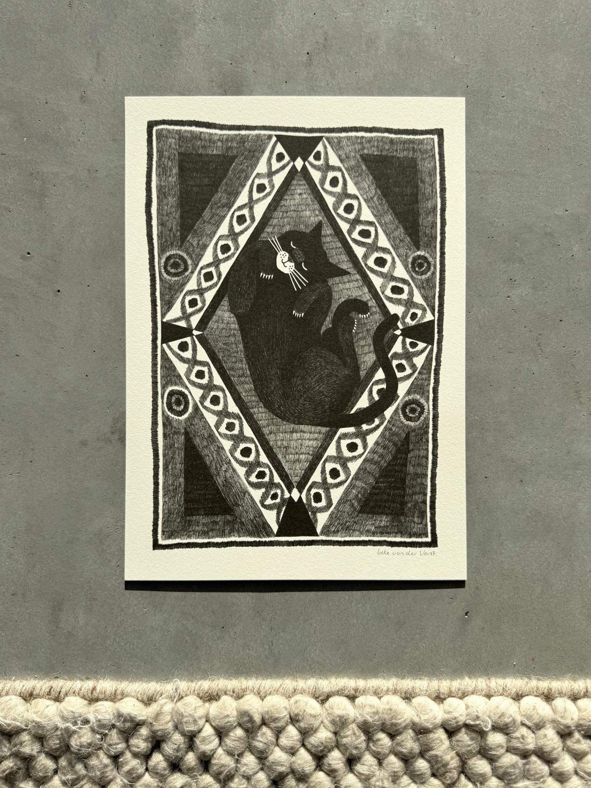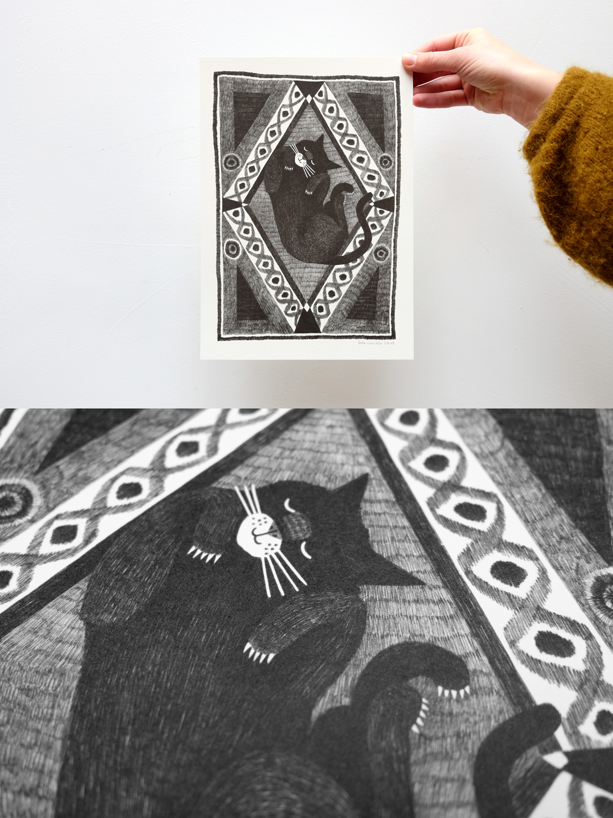 Het formaat van de prent is 29,7 cm x 21 cm en verpakt in een zakje met stevig karton achter de illustratie. Elke prent is gesigneerd. Mocht je informatie en inspiratie zoeken voor in het inlijsten van je prent, dan vind je ideeën in deze blogpost. Of kies voor de optie ‘with frame’ en we zorgen dat de prent ingelijst wordt in een 31,5 cm x 23 cm ayous houten lijst met helder glas.