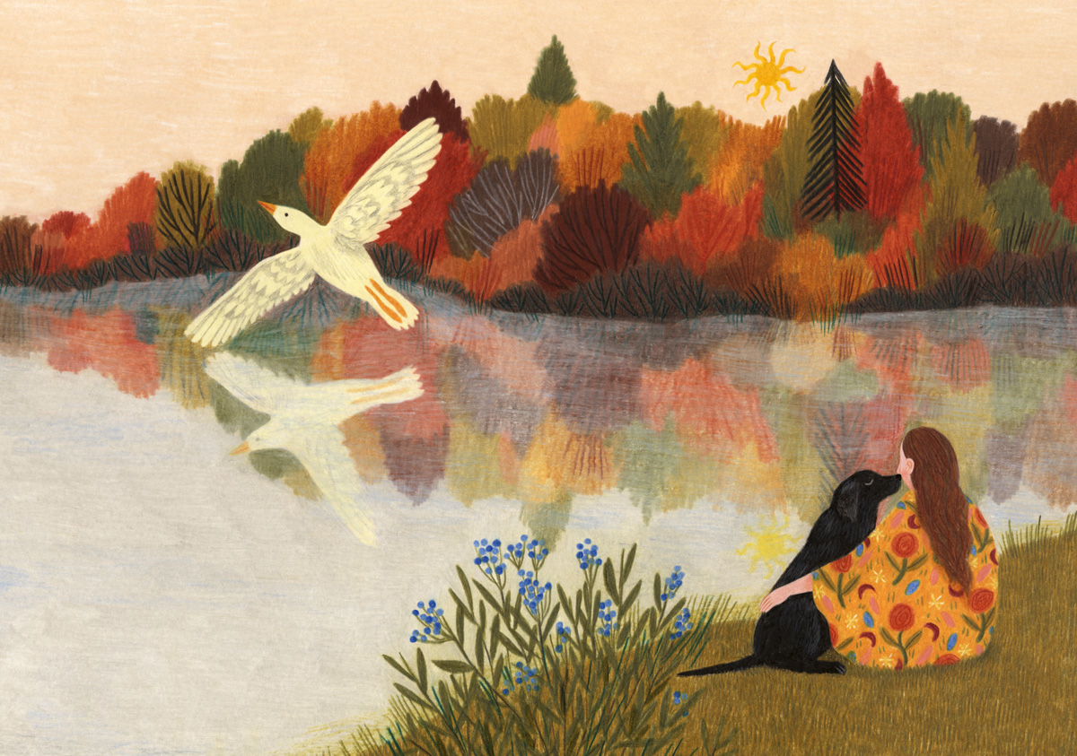 My dear friend Britt wrote a beautiful poetry collection about grief, comfort, and transformation, and I had the honor of illustrating the cover for her. She lost her beloved dog Maddie last year, and of course, Maddie holds a special place of honor in the illustration. You can visit her website to find the collection.